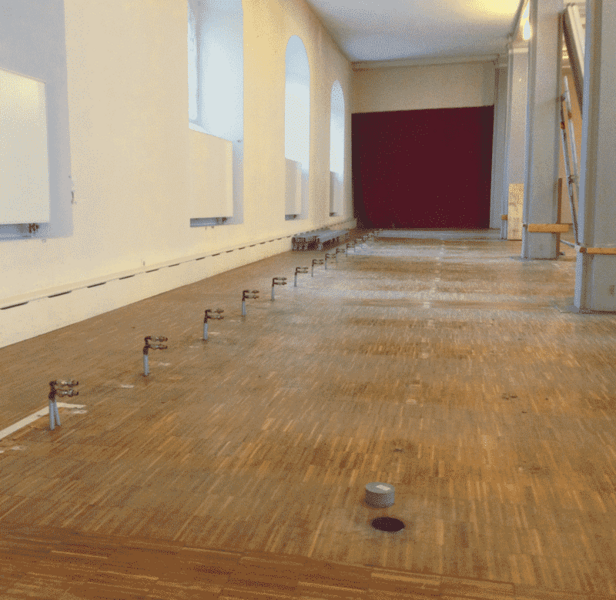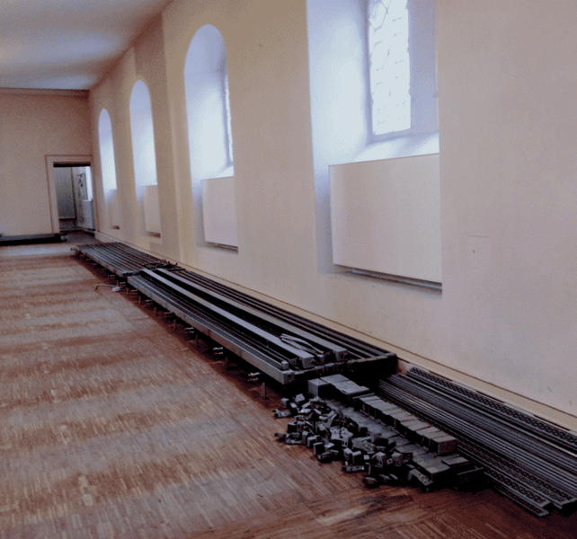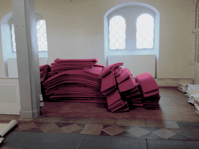 Denn die Kirche musste ausgeräumt werden. Bänke und Bankheizungen wurden seitlich verkürzt, so dass nun mehr Platz für Ausstellungen und andere Veranstaltungen gewonnen wurde. Elektrik und Licht wurden ausgetauscht, eine energetische Sanierung. Unter die Decke wurde ein farbiges Lichtband gelegt.