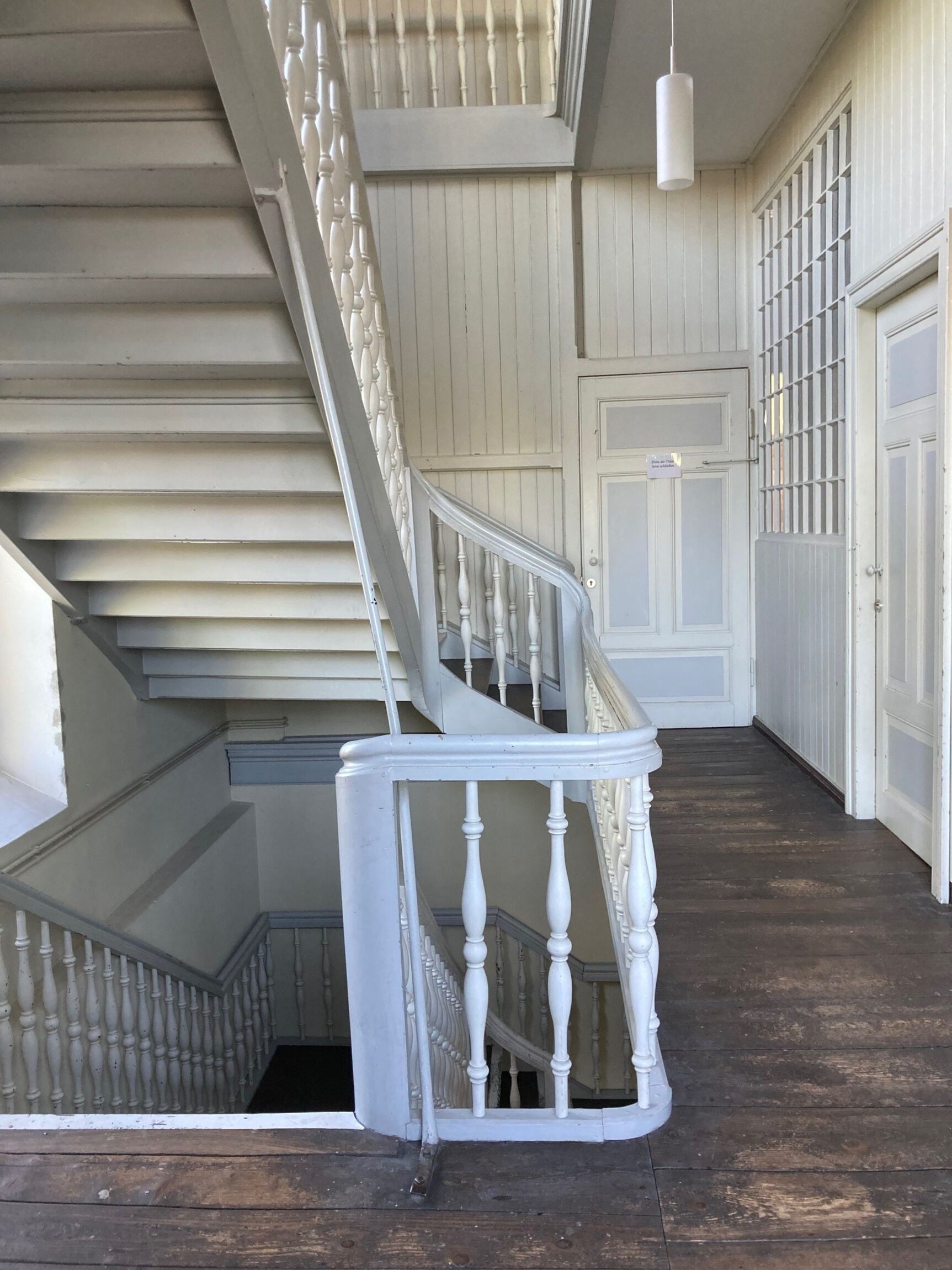 - Die Treppe im nördlichen Treppenhaus muss wieder aufgerichtet werden und soll über die Decke stabilisiert werden