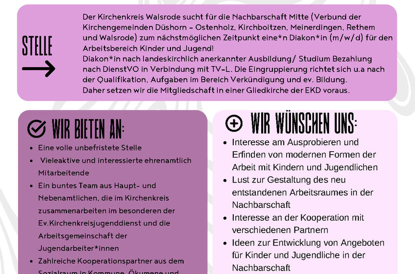 In diesem Jahr feiern wir das 175-jährige Bestehen der Stadtkirche Walsrode. Dieses Jubiläum begehen wir im Rahmen des Festwochenende "Der Heidekreis ist bunt" vom 29. – 31. August. Dabei ...