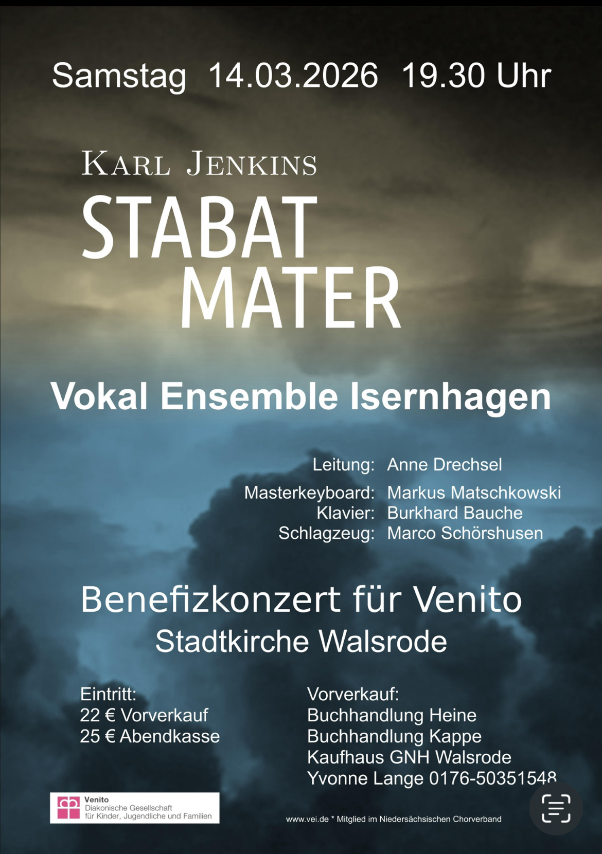 Am 14. März um 19:30 Uhr findet in der Stadtkirche Walsrode ein besonderes Konzert statt. Besonders, weil das Vokalensemble Isernhagen (www.vei.de) erstmalig für eine Aufführung nach Walsrode kommt und die Chorleiterin Anne Drechsel sowie sämtliche Sängerinnen und Sänger auf eine Gage verzichten. Das tun sie vollkommen uneigennützig, denn mit dem Erlös wird das Projekt „Wir gemeinsam gegen Ausgrenzung und für Vielfalt und Demokratie!“ für Jugendliche in Walsrode unterstützt.